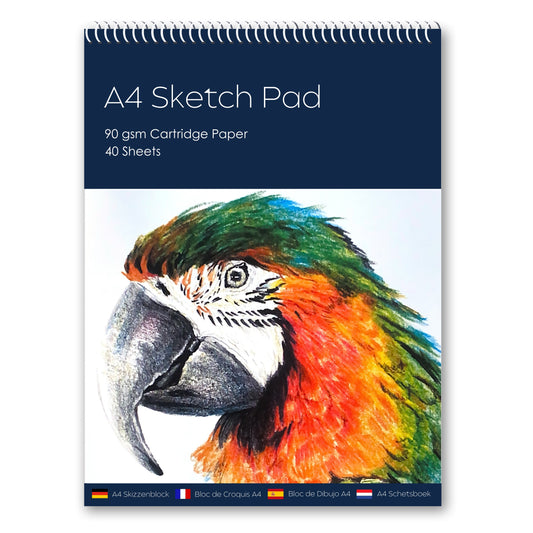 A4 Spiral Bound Sketch Pad – 40 Sheets of 90gsm White Cartridge Paper | Durable & Portable Sketchbook for Artists