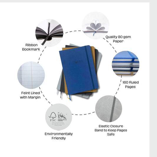 Ruled Notebook – 160 Lined Pages with Margin, 80gsm Paper, Ribbon Bookmark – Eco-Friendly Writing Journal for Work, Study & Notes