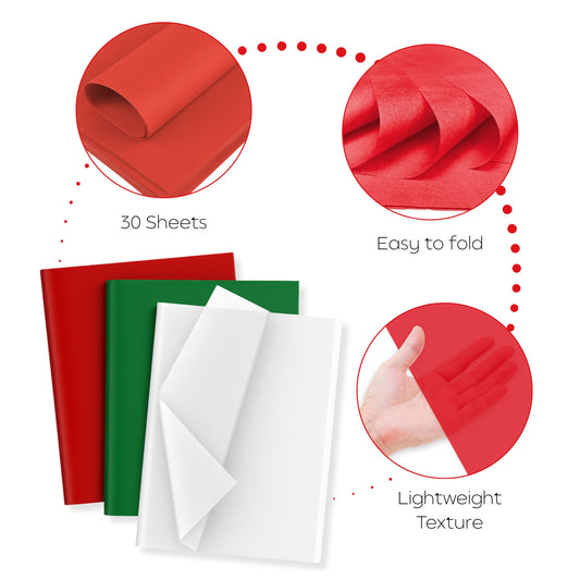 Christmas Tissue Paper Set – Red, Green & White | Holiday Gift Wrap & Decorations