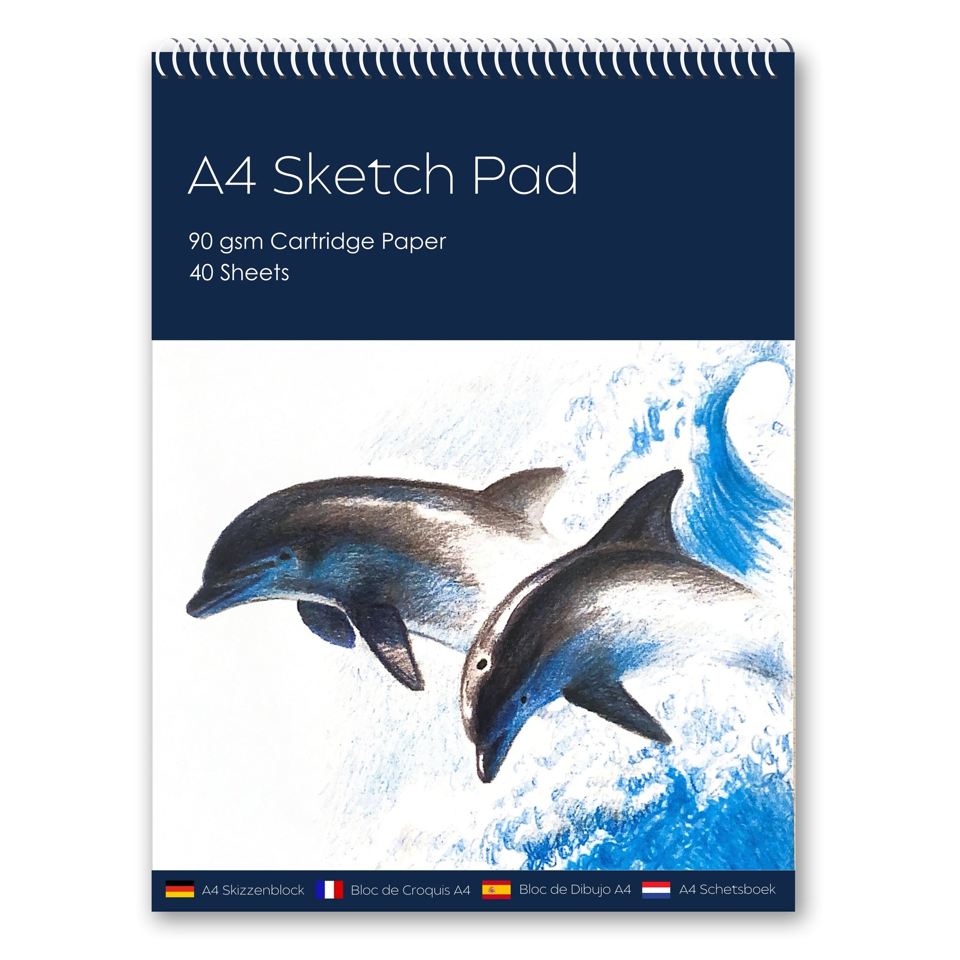 A4 Spiral Bound Sketch Pad – 40 Sheets of 90gsm White Cartridge Paper | Durable & Portable Sketchbook for Artists